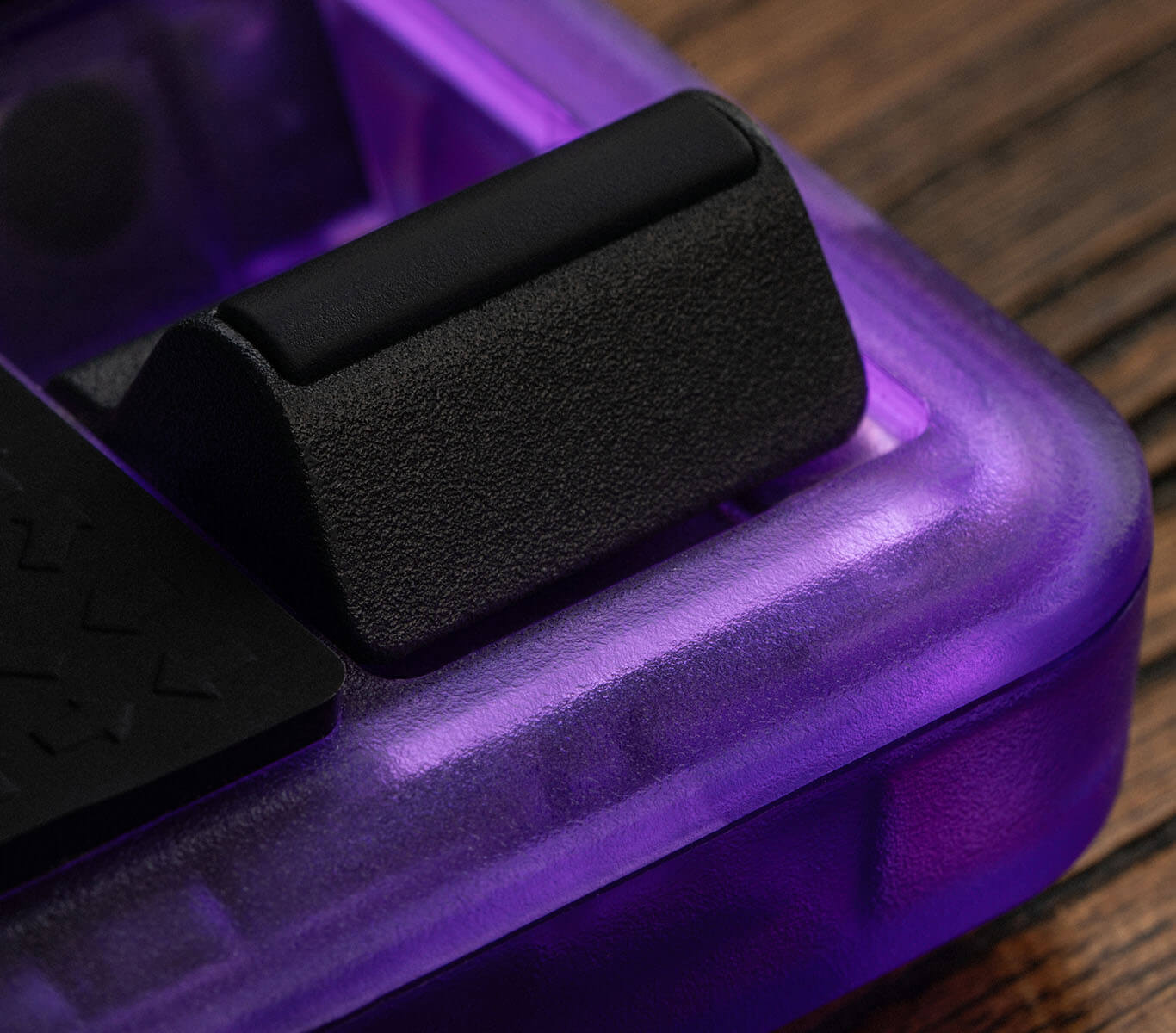 “咔咔”一甩,脚架就会呈 90° 立于桌面,既保证稳定性,又有更舒适的格斗角度。