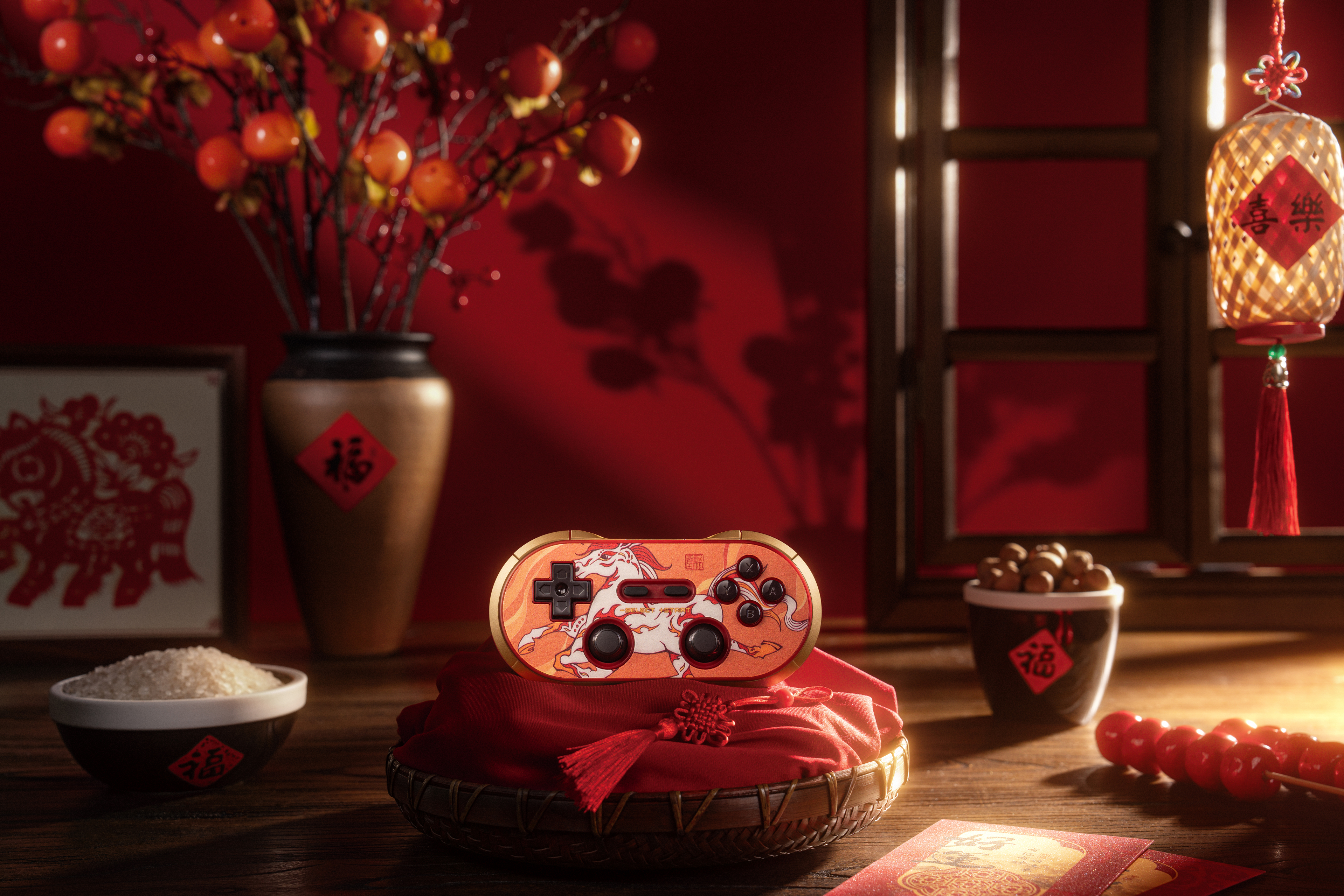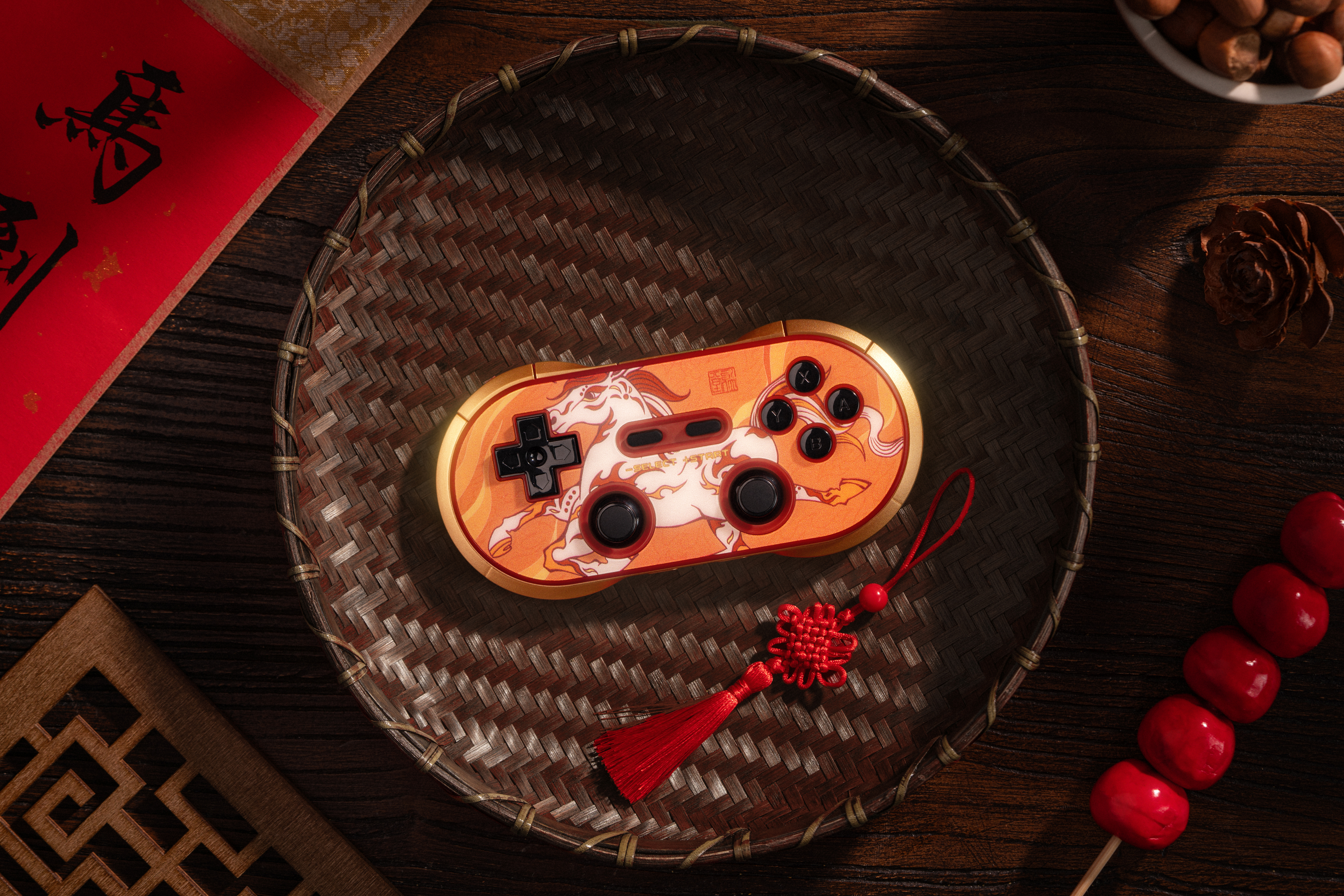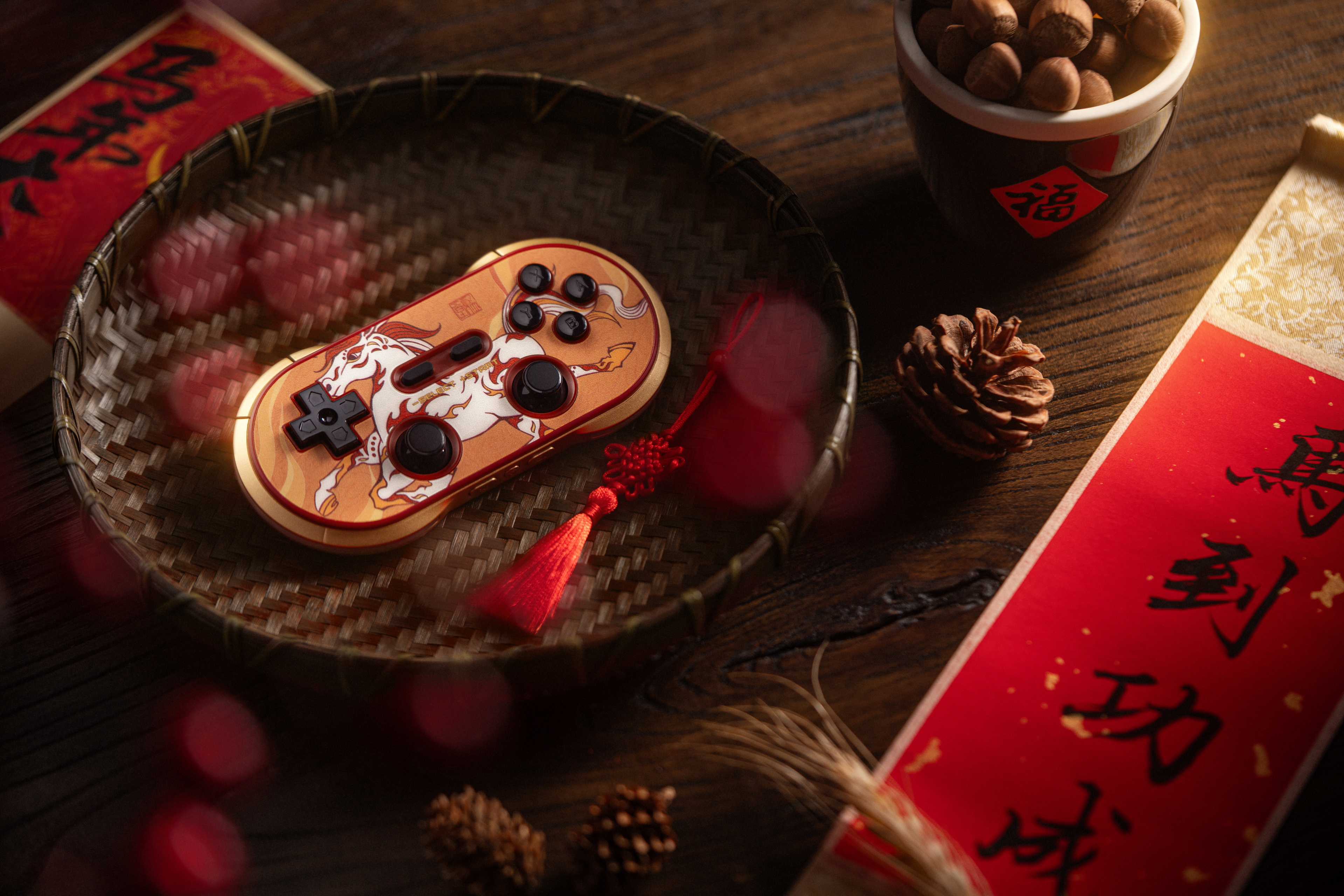 手柄以丙午“干支一气”之火为灵感,主视觉采用奔涌的火焰元素,象征激情与热烈。