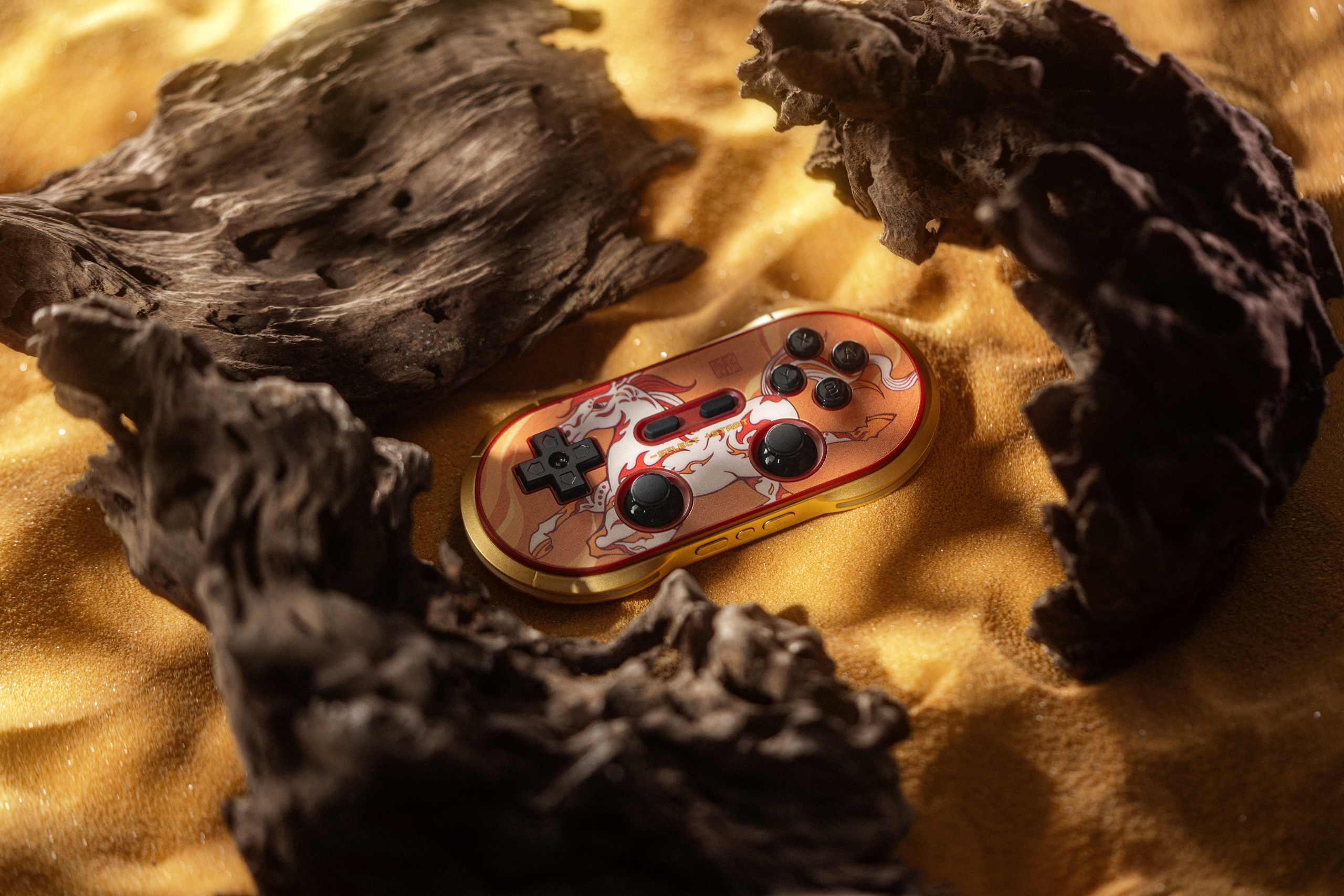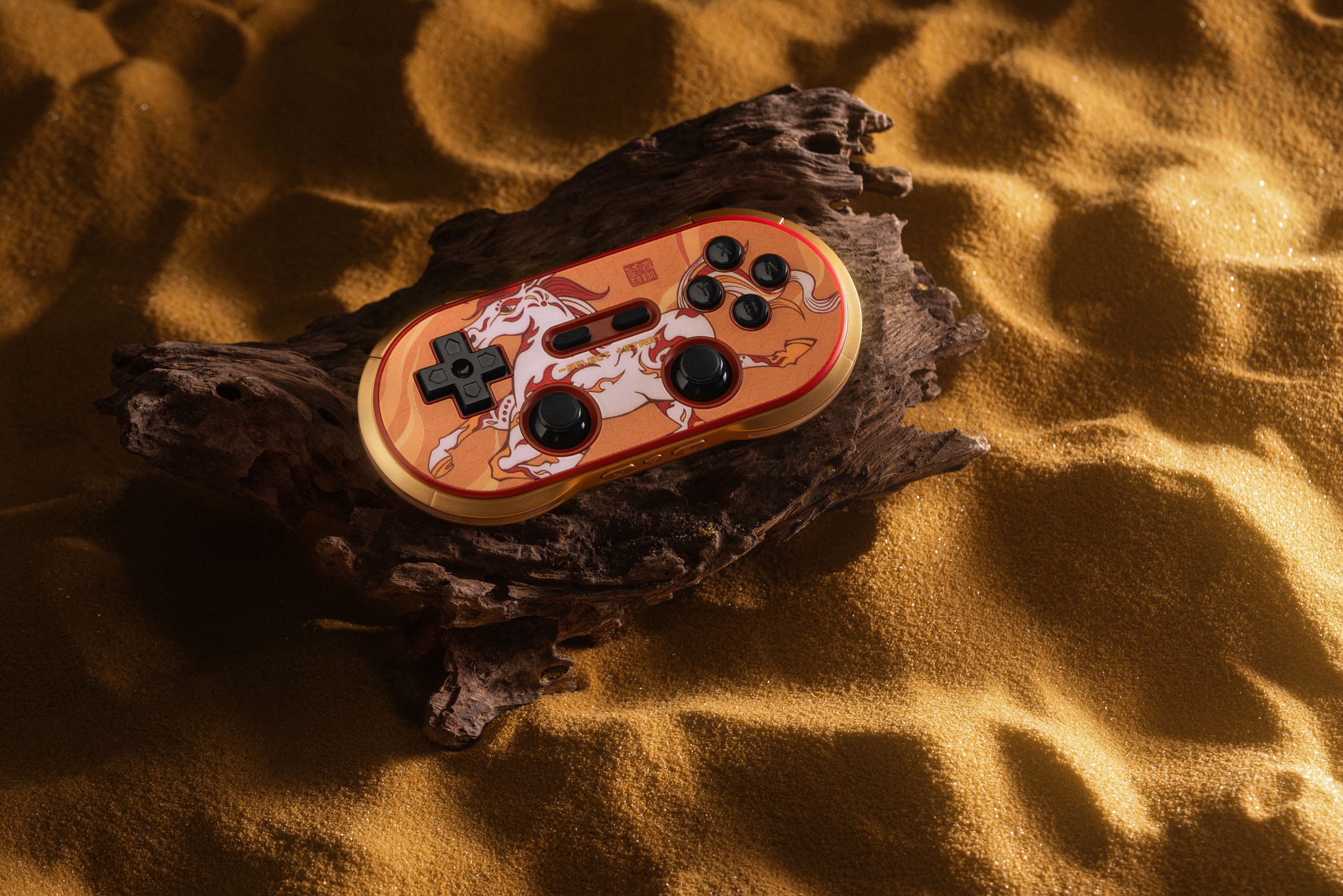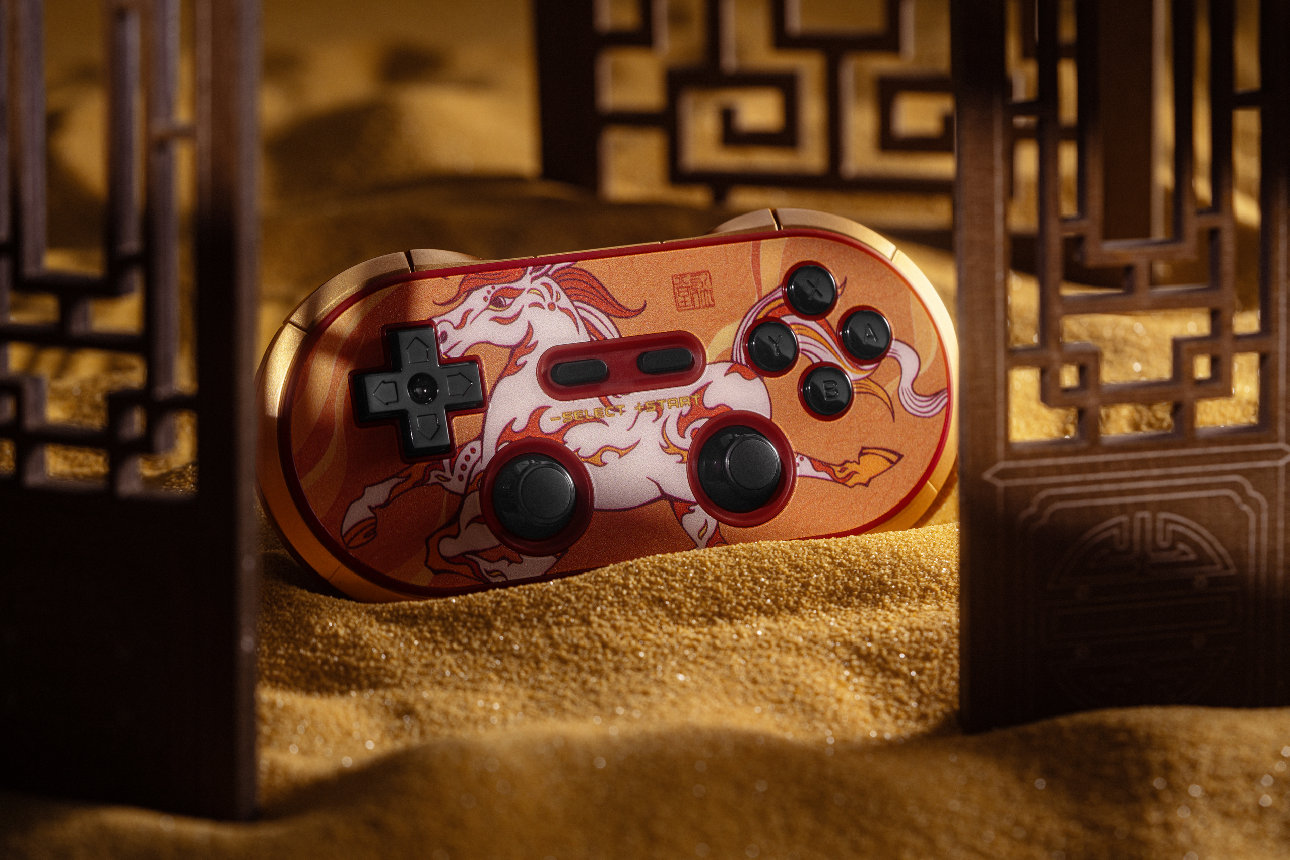 手柄以丙午“干支一气”之火为灵感,主视觉采用奔涌的火焰元素,象征激情与热烈。