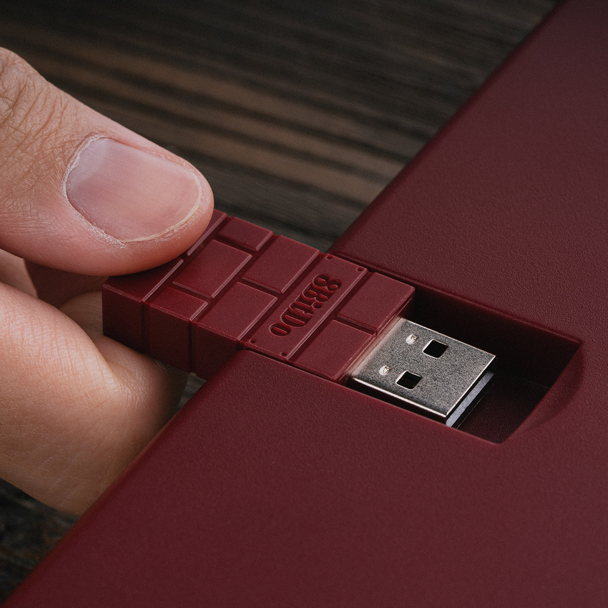 三种连接模式:蓝牙、2.4G 无线和有线连接。置顶式结构提供一致且均衡的手感,采用 PBT 热升华工艺的键帽超耐磨且不易打油。